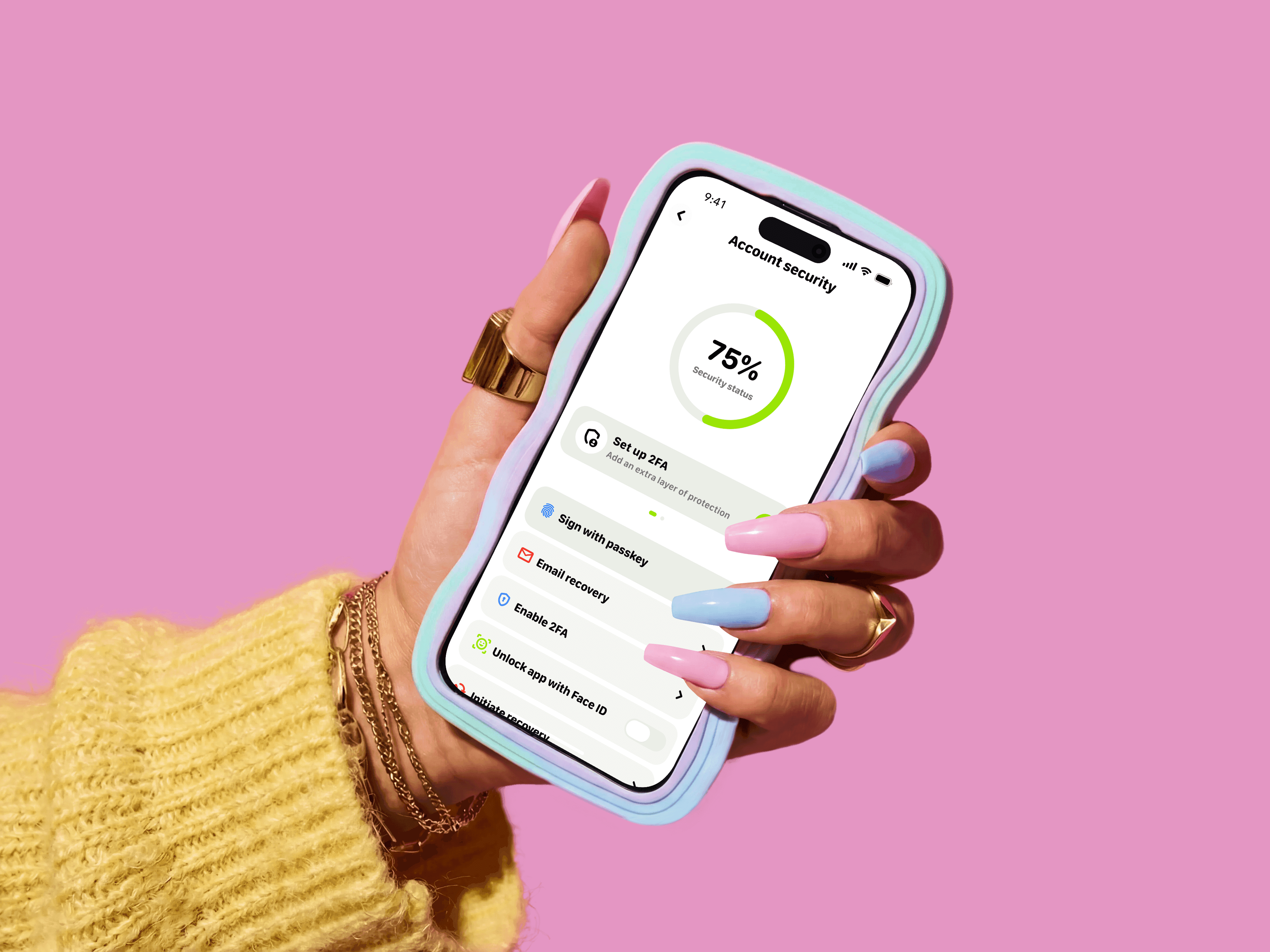 Secure your funds with true self-custody made simple. Login with Face ID, recover your account safely, and export your keys anytime.