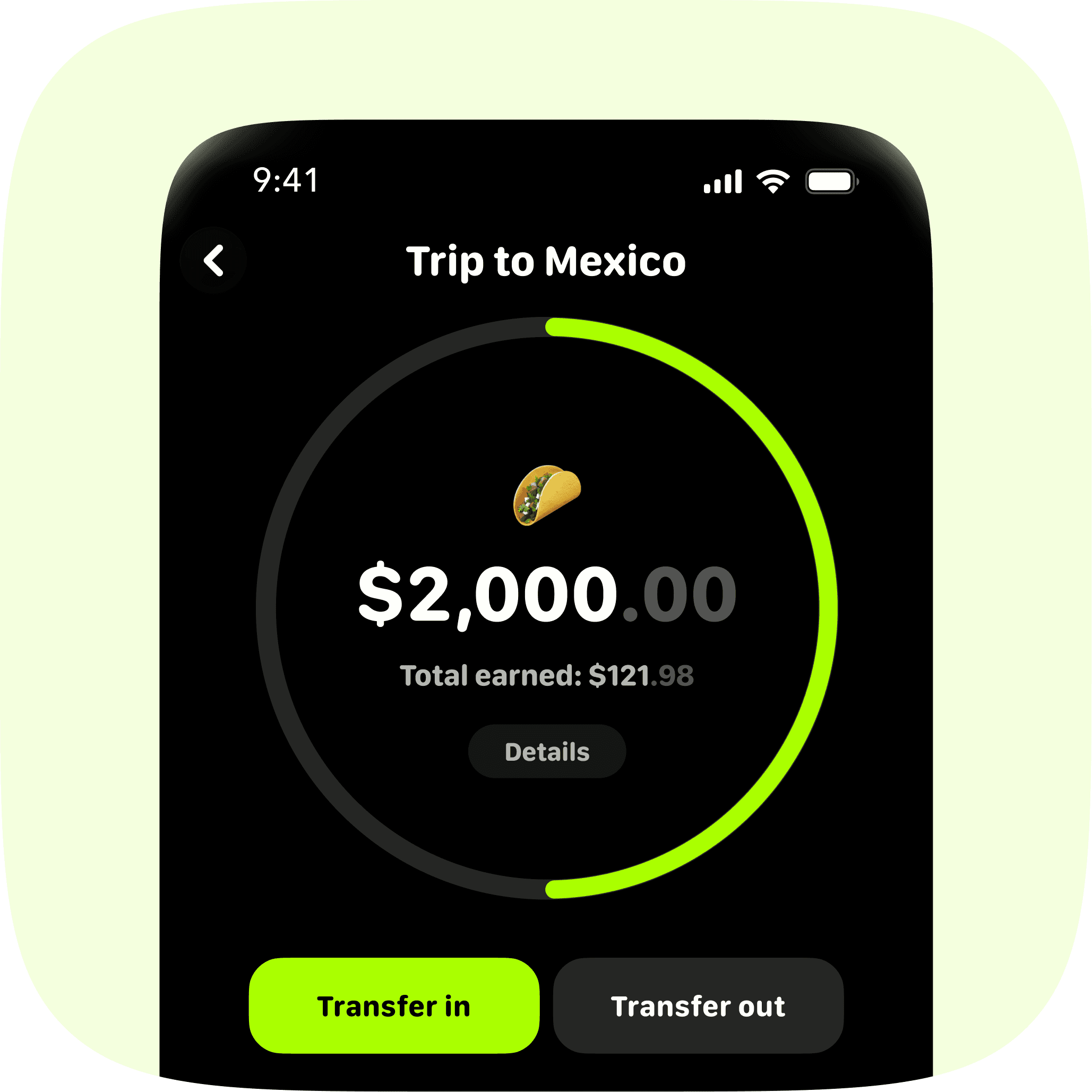 Earn high interest with no hidden fees, customize savings goals and track your progress.